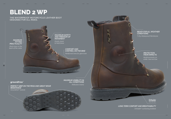 Giày bảo hộ moto TCX Blend 2 WP là loại giày motor chống thấm nước có dây buộc, được làm từ da bò full-grain cao cấp với màng chống thấm T-Dry và hoàn thiện với phong cách classic. Đảm bảo mức độ an toàn cao nhất nhờ các miếng bảo vệ ở mắt cá chân, gia cố khu vực tiếp xúc cần số, mũi và gót giày. Giày Blend 2 WP có đế cao su Groundtrax® đảm bảo độ ổn định, độ bám và khả năng chống mài mòn tối ưu. Miếng lót OrthoLite® hoàn hảo cho lòng bàn chân ngay cả sau nhiều lần sử dụng và độ thông thoáng cao, mang lại sự thoải mái tối đa.